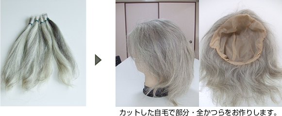 また全かつらであれば、数年伸ばした髪(20〜30センチ)をカットして 2〜3回分ほどためて頂けると作成が可能です。